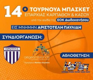Με τη συμμετοχή επτά ομάδων θα διεξαχθεί από 28 Ιουλίου έως 17 Αυγούστου, το 14ο καλοκαιρινό τουρνουά μπάσκετ της επαρχίας Καρπάθου- Κάσου.