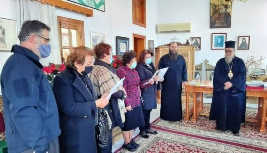 Αντιπροσωπεία κυριών από την ενορία του Ι.Ν. Παναγίας Πλαγιάς Βωλάδος, με πρωτοβουλία του εφημέριου και Πρωτοσύγκελου της Ι.Μητροπόλεως μας π. Επιφανίου Χριστοδουλάκη, έψαλλαν σήμερα τα παραδοσιακά κάλαντα στον σεπτό μας …