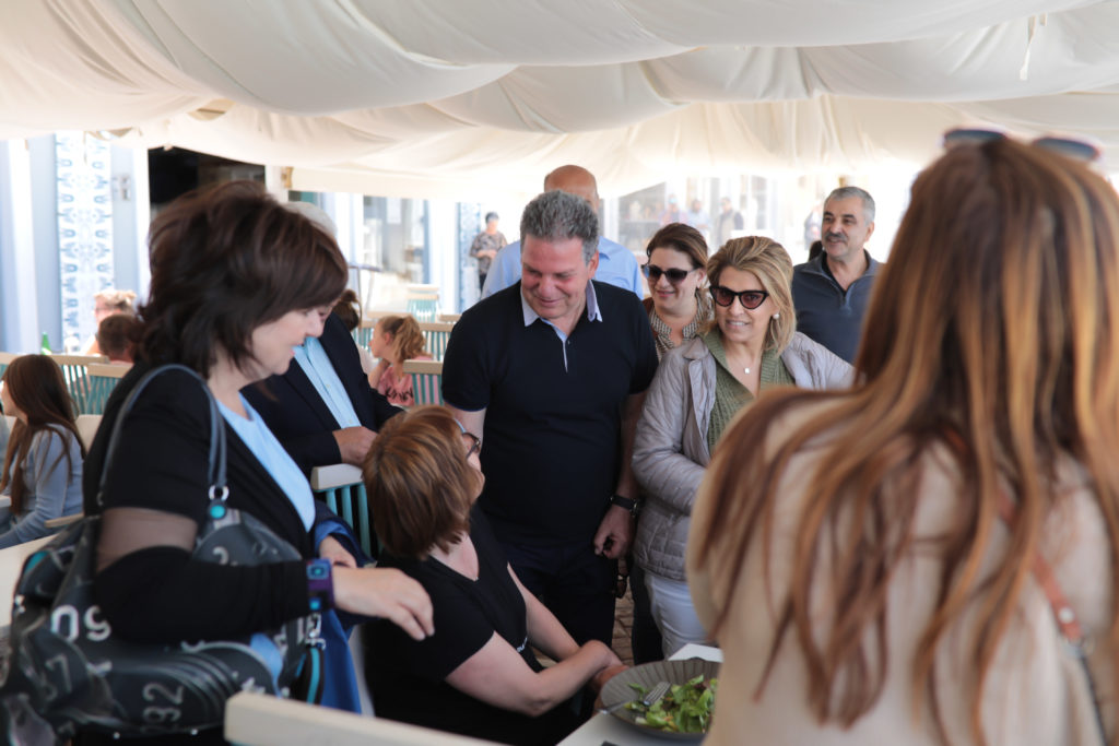 Ο κ Γλυνός σε όλη τη διάρκεια της επίσκεψης του πέρα των δύο υποψηφίων του συνδυασμού του κκ Γιάννη Λαχανά και Γιάννη Χαροκόπου, συνοδευόταν από τη σύζυγο του κ Θέτιδα Χιωτάκη, κόρη του αειμνήστου Καρπάθιου Βουλευτή Δωδεκανήσου Γεωργίου Χιωτάκη.