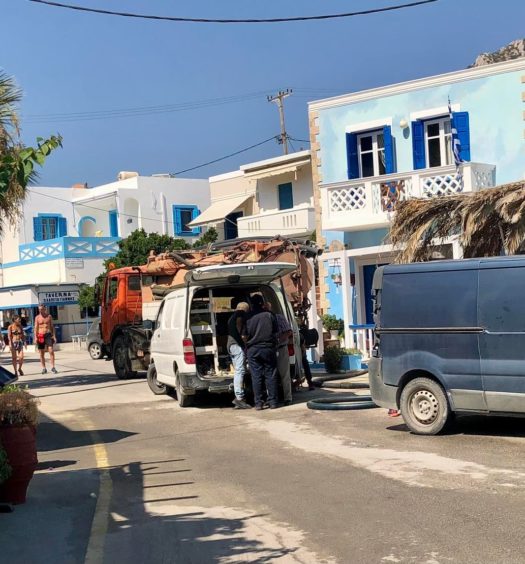 Είπε στον Ανδρέα να πάει στο αμπέλι τους να ποτίσει, να σκαλίσει και να κάμει τις δουλειές που έκανε και πρώτα, για να μη δώσουν υποψίες. Οι υπόλοιποι πήγαν στο μαντροκάισμα του Γιώργη του Σαρρή, είναι μια τοποθεσία πάνω από τη θάλασσα, βλέπεις όλη τη γύρω περιοχή χωρίς να φαίνεσαι. Είχε πια ξημερώσει και κάτσανε να φάνε από τα φαγητά των κατασκόπων. Μόλις τελείωσαν σκάψανε ένα λάκκο για να κρύψουν τα τενεκεδάκια από τις κονσέρβες και ό,τι άλλο θα μπορούσε να προδώσει την παρουσία των κατασκόπων.