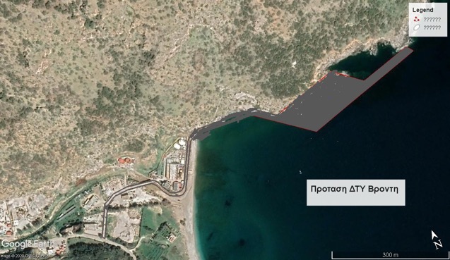 γ. την κατασκευή εναλλακτικού κρηπιδώματος μήκους 200 μ. στην βόρεια ακτή του Βρόντη