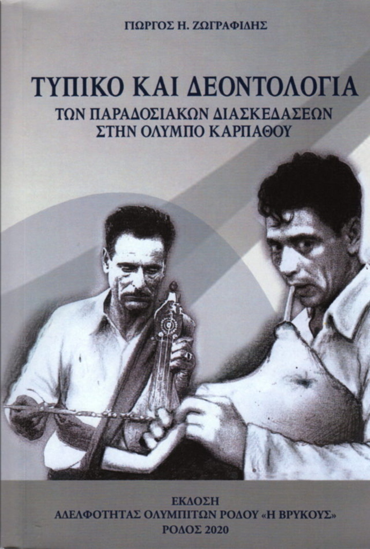 Κυκλοφόρησε στη Ρόδο, το νέο, πρωτότυπο για το αντικείμενό του, βιβλίο του τ. Επιθεωρητή Εργασίας Δωδεκανήσου Γεωργίου Η. Ζωγραφίδη με τον τίτλο «Τυπικό και δεοντολογία των παραδοσιακών διασκεδάσεων στην Όλυμπο της Καρπάθου» (σελ. 466), που εκδόθηκε από την Αδελφότητα Ολυμπιτών Ρόδου «Η ΒΡΥΚΟΥΣ», με σκοπό να προσφερθεί στα μέλη της τις ημέρες των γιορτών των Χριστουγέννων.
