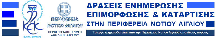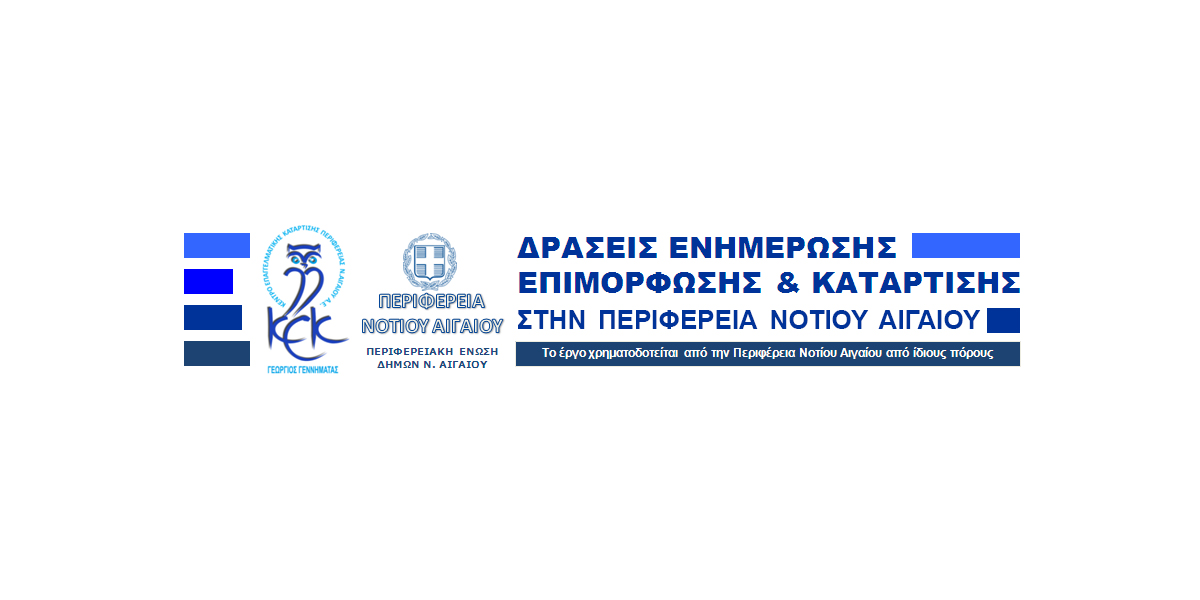 Το Κ.Ε.Κ. Γεννηματάς της Περιφέρειας Νοτίου Αιγαίου συνεχίζει τη δραστηριότητα του για το 2021 με νέες, άκρως ενδιαφέρουσες, δωρεάν, εξ αποστάσεως εκπαιδευτικές δράσεις, επικεντρωμένες μεταξύ άλλων στον Τουρισμό, στη Διαχείριση Κινδύνου, Κρίσεων, Φυσικών Καταστροφών όπως επίσης και στην Αρχιτεκτονική, στην Λαογραφία και στην Τέχνη.