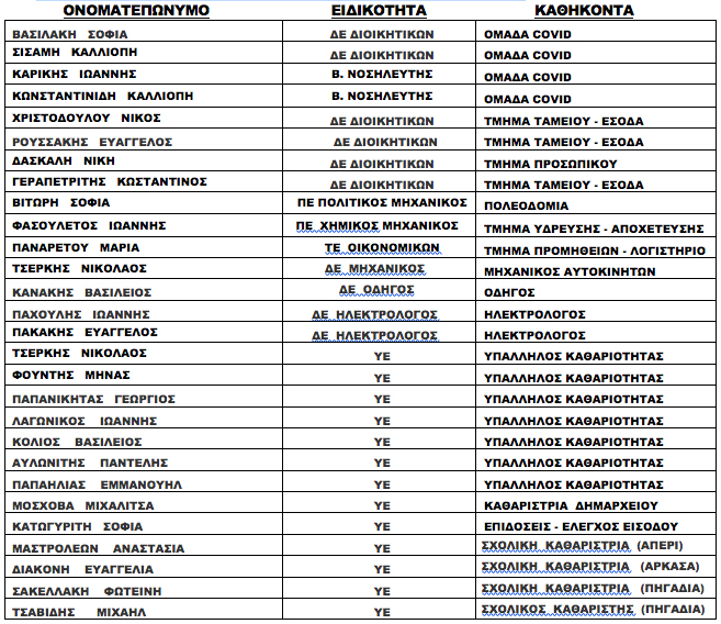 Ο Δήμος Καρπάθου, επωφελούμενος τις διατάξεις του άρθρου 74 του Ν. 4745/2020 και του άρθρου 175 του Ν. 4764/2020, σύναψε οκτάμηνες συμβάσεις εργασίας ιδιωτικού δικαίου ορισμένου χρόνου, για την αντιμετώπιση κινδύνων που προκύπτουν από την εμφάνιση και διασπορά της πανδημίας του κορωνοϊού COVID-19 και την ενδυνάμωση των υπηρεσιών του.