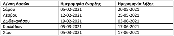 Οι προθεσμίες των αντιρρήσεων ανά περιοχή αρμοδιότητας των Δ/νσεων Δασών ορίζονται ως εξής: