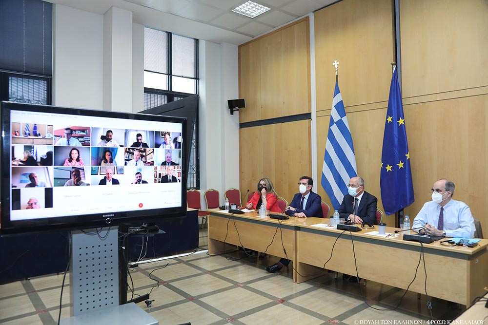 Η Γραμματέας της Ομάδας Φιλίας κ. Ολυμπία Τελιγιορίδου, o Πρέσβης του Ισραήλ στην Αθήνα κ. Yossi Amrani και ο Πρόεδρος της Ομάδας Φιλίας κ. Δημήτριος Καιρίδης.