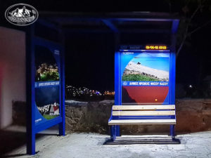 Το κάθε στέγαστρο αστικής συγκοινωνίας είναι εξοπλισμένο με ηλεκτρονικό σύστημα ενημέρωσης επιβατικού κοινού σχετικά με τα προγραμματισμένα δρομολόγια και ανακοινώσεις μέσω ηλεκτρονικής πινακίδας τεχνολογίας led, καθώς επίσης με θύρες USB για φόρτιση έξυπνων συσκευών, παγκάκι και κάδο απορριμμάτων.