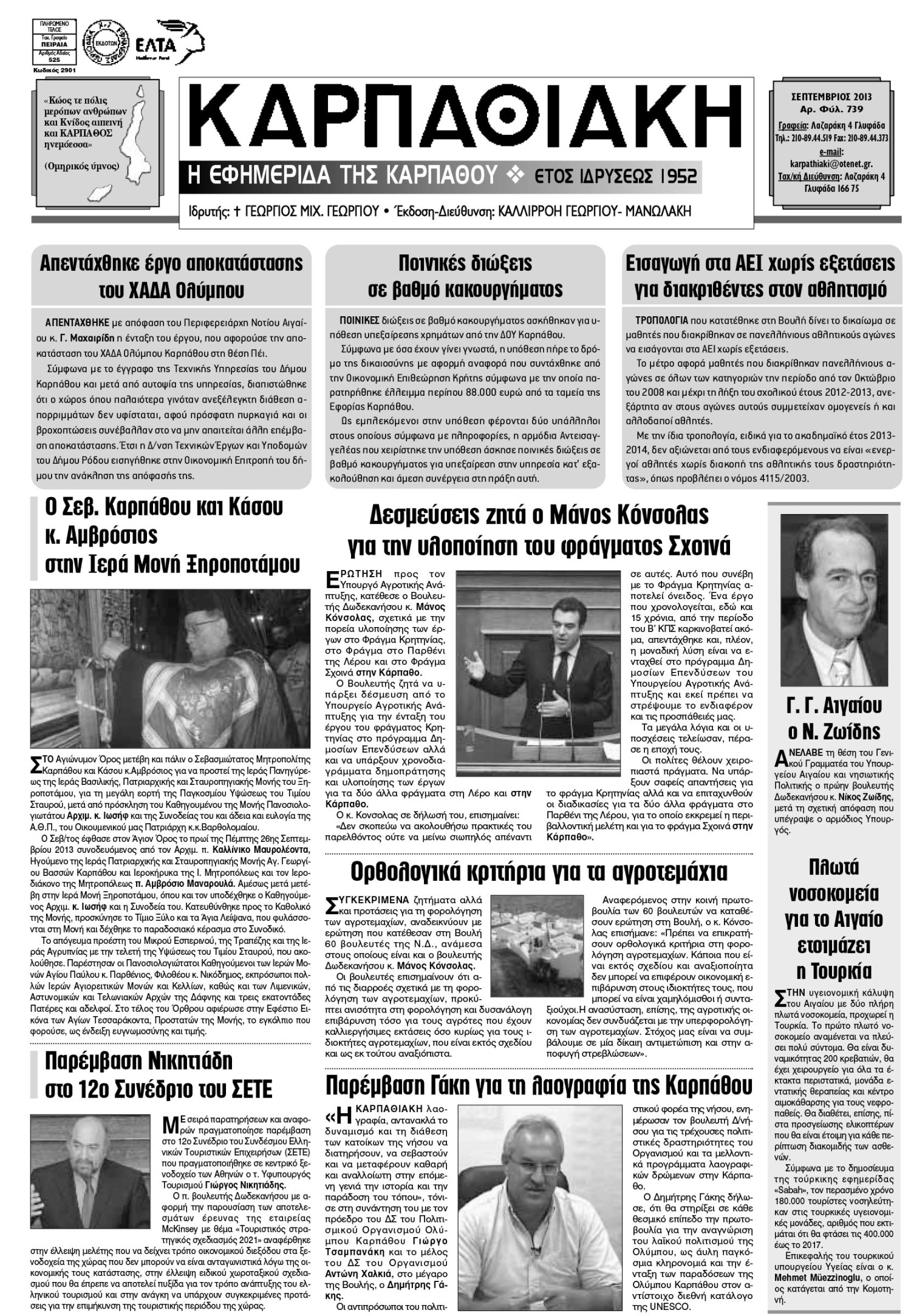 ΚΑΤΕΒΑΣΤΕ ΟΛΟΚΛΗΡΟ ΤΟ ΤΕΥΧΟΣ 739 ΤΗΣ ΚΑΡΠΑΘΙΑΚΗΣ