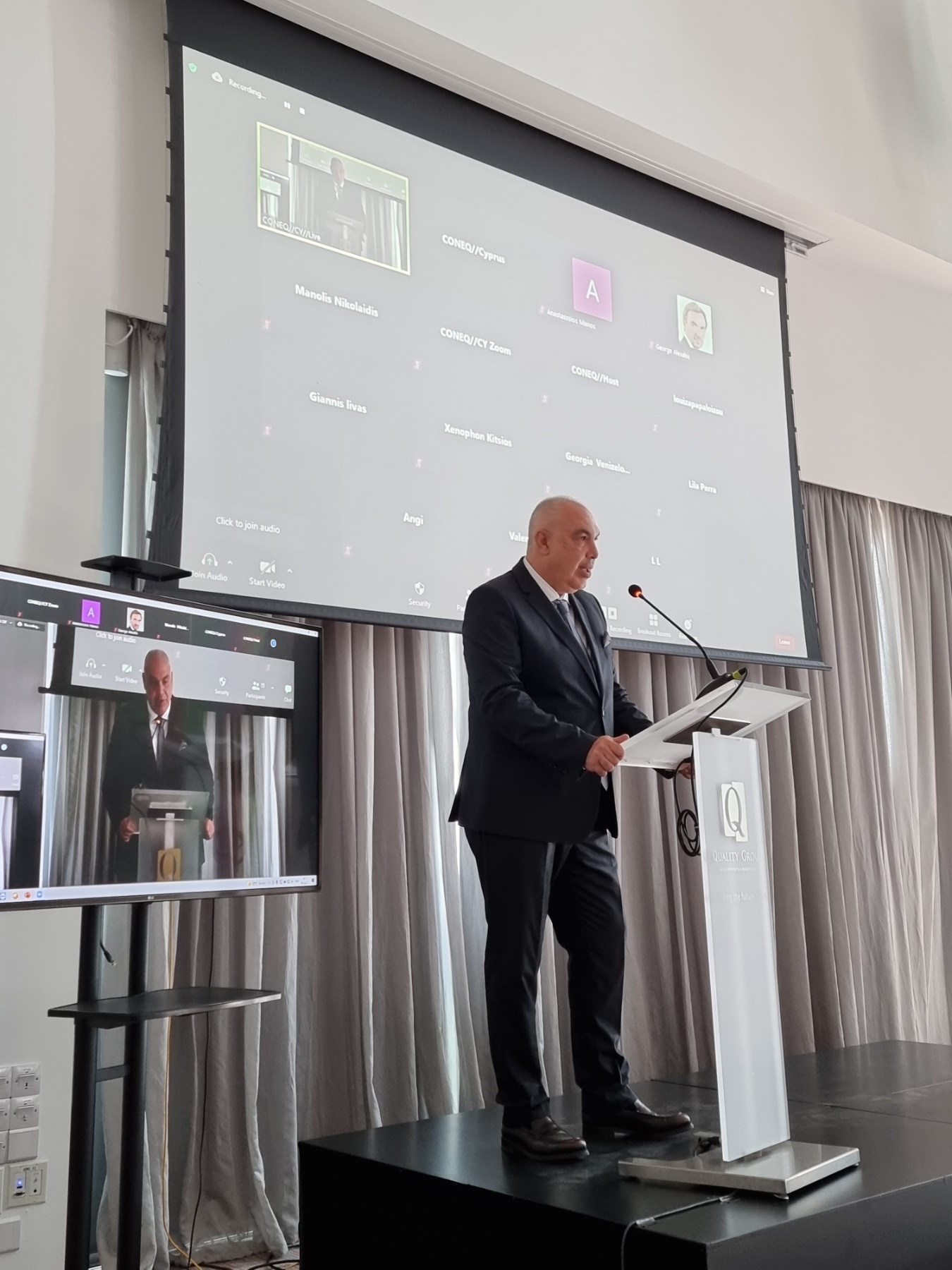Στο περιθώριο της ημερίδας ο Χρήστος Μπάρδος είχε συνομιλία με τον υφυπουργό Ναυτιλίας της Κυπριακής Δημοκρατίας για θέματα του έργου.