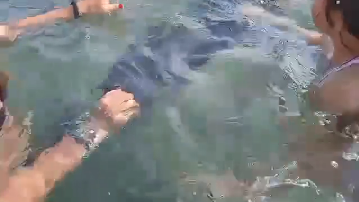 Την δεύτερη μέρα, σε κάποια στιγμή νωρίτερα όμως ενώ δεν είχε πολύ κόσμο η παραλία, το μικρό μπερδεύτηκε και ήρθε πολύ ρηχά με αποτέλεσμα να το ξεβράσει έξω στην ακτή το κύμα.
