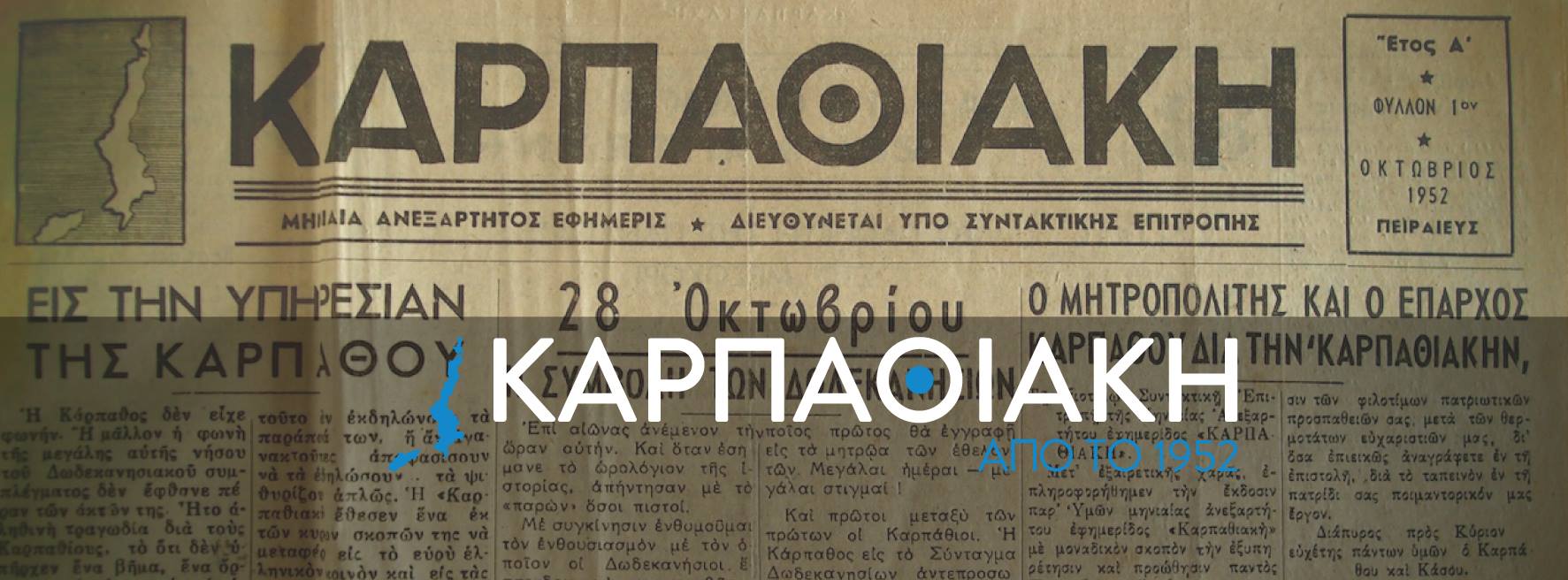 Η Εφημερίδα “ΚΑΡΠΑΘΙΑΚΗ” υπηρετεί για εξήντα εννέα (69) χρόνια και πλέον τους ανά την γη Καρπάθιους παρέχοντας σ’ αυτούς άμεση και υπεύθυνη πληροφόρηση.