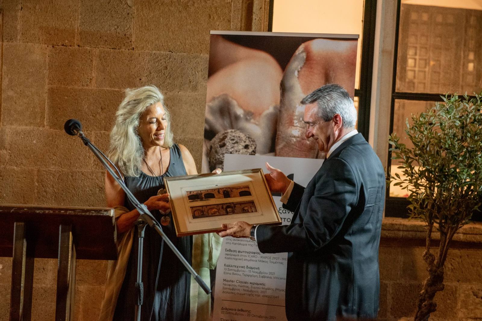 «Δύο πράγματα πρέπει να σχολιάσω Εξαιρετικά συγκινημένος ήμουν στο Λούβρο της Γαλλίας όταν πριν από μερικά χρόνια ο περιφερειάρχης Γιώργος Χατζημάρκος με τη βοήθεια της κ. Μοσχή πήραν ένα κεραμικό το έβαλαν σε μια αφίσα και το Λούβρο γιόρτασε τη Ροδιακή ιστορία.