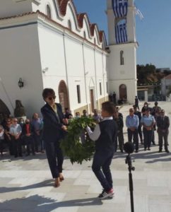 Ακολούθησε τρισάγιο στο Μνημείο του Ήρωα Παναγιώτη Ορφανίδη, κατάθεση στεφάνων, προσκλητήριο νεκρών και απαγγελίες από το Δημοτικό σχολείο Απερίου.