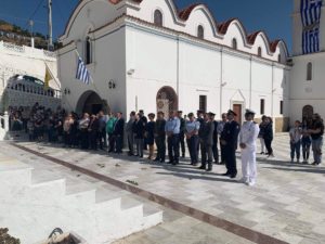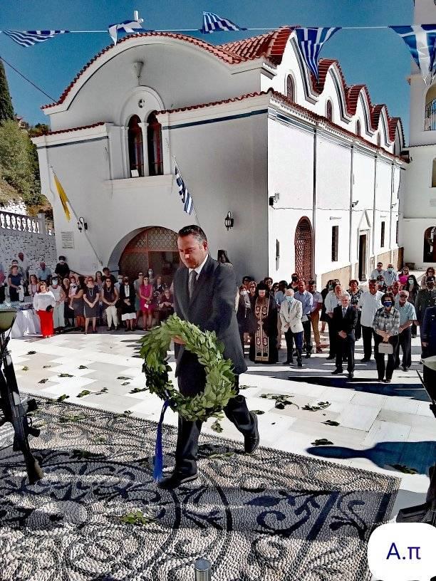 Κατέθεσαν στεφάνια οι κ.κ.: H ‘Eπαρχος Kαλλιόπη Νικολαιδου, ο Δήμαρχος Γιάννης Νισύριος, οι πάρεδροι Απερίου, Πυλών, Μενετών, Πηγαδίων και Βωλάδας, η “ΟΜΟΝΟΙΑ”, το Δημοτικό, Γυμνάσιο και Λύκειο. Επίσης κατέθεσαν οι Διοικητές Πυροσβεστικής, Αεροπορίας, Λιμενικού, Αστυνομίας και Στρατού.