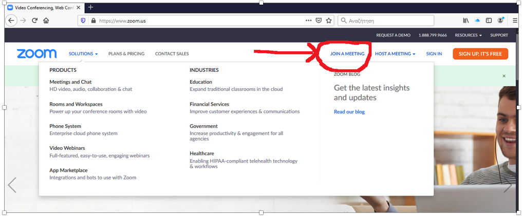 απλά μπαίνετε στην παρακάτω σελίδα και επιλέγετε στο πάνω δεξί μέρος της σελίδας JOIN A MEETING