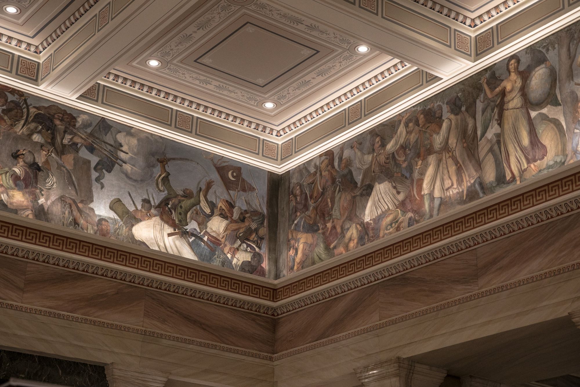 Τριακόσια εξήντα επτά μοναδικά εικαστικά και κειμενικά τεκμήρια συνομιλούν με τον τοιχογραφικό διάκοσμο του ιστορικού κτηρίου του Κοινοβουλίου και αφηγούνται την πορεία των Ελλήνων προς την Ελευθερία.