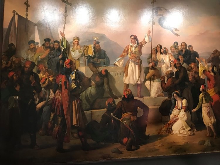 Μπαίνοντας στην Αίθουσα Ελευθερίου Βενιζέλου το πρώτο πράγμα που προσέχεις είναι ο πιο δημοφιλής πίνακας με θέμα το ‘21. Η «Πυρπόληση της Τουρκικής Ναυαρχίδας από τον Κανάρη, στη Χίο» του Νικηφόρου Λύτρα.