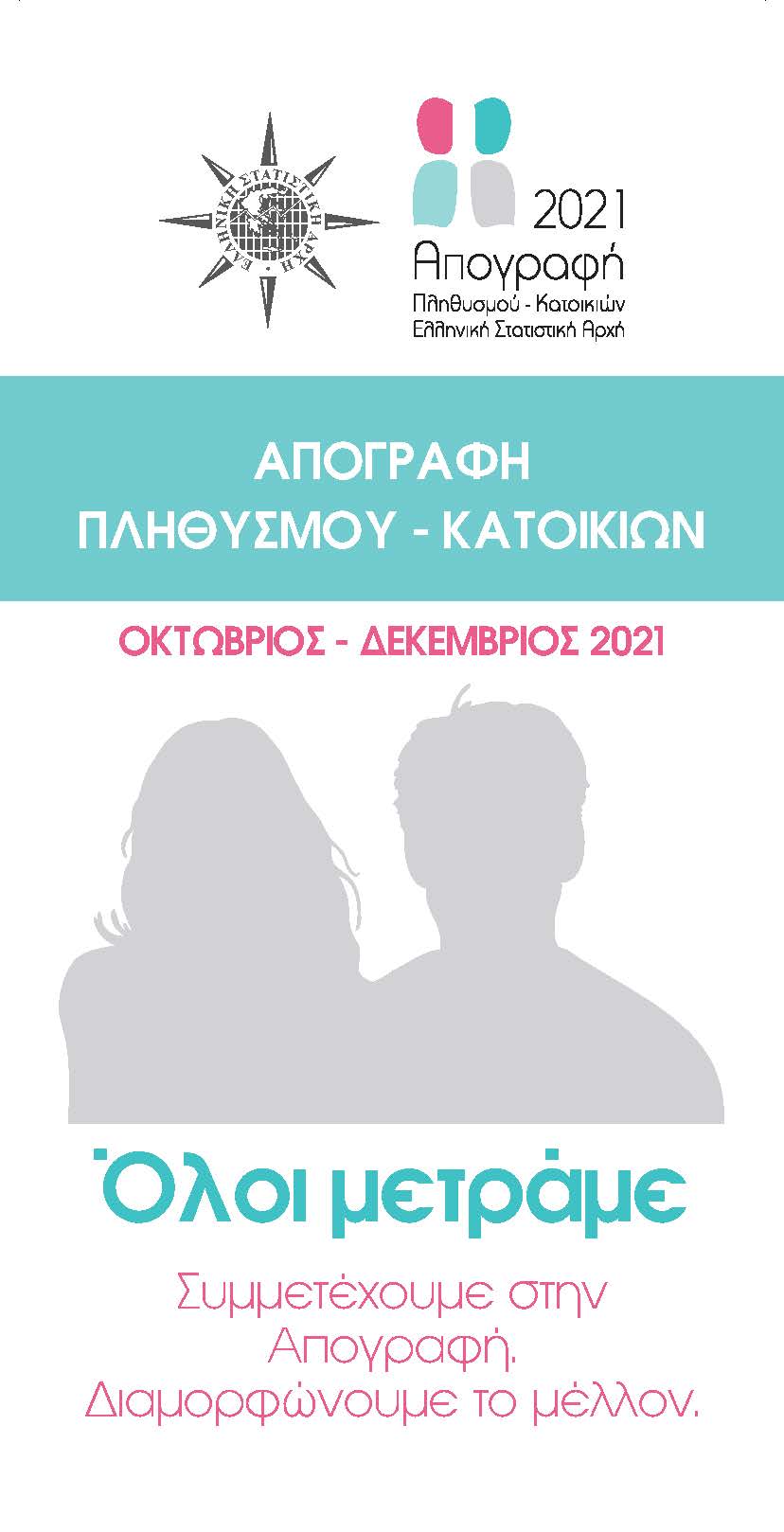 Η Ελληνική Στατιστική Αρχή (ΕΛΣΤΑΤ), όπως κάθε δέκα χρόνια, θα διενεργήσει την Απογραφή Πληθυσμού – Κατοικιών, μια ευρείας κλίμακας στατιστική εργασία που έχει σκοπό τη συγκέντρωση στοιχείων για τα δημογραφικά, οικονομικά και κοινωνικά χαρακτηριστικά του πληθυσμού της Ελλάδας, καθώς και για τη σύνθεση των νοικοκυριών και τις συνθήκες διαβίωσής τους. Η πρώτη Απογραφή στη Χώρα έγινε το 1828, όταν Κυβερνήτης της ήταν ο Ιωάννης Καποδίστριας. Με την Απογραφή αυτή έγινε η εξακρίβωση του πληθυσμού της Χώρας (753.400 κάτοικοι) και, ταυτόχρονα, η αναδρομική εκτίμηση για τον πληθυσμό της το 1821 (938.765 κάτοικοι). Στην Απογραφή του 2011 ο μόνιμος πληθυσμός της Ελλάδας ήταν 10.816.286.