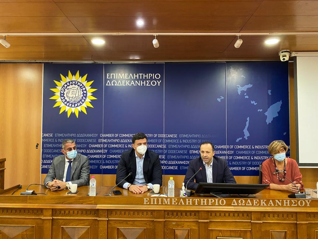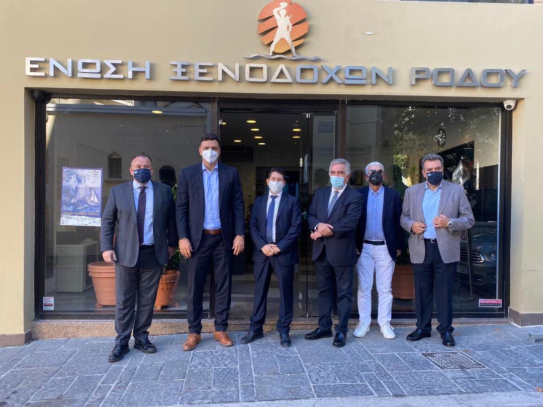 Ο Υπουργός Τουρισμού Βασίλης Κικίλιας πραγματοποίησε διαδοχικές συσκέψεις εργασίας με το Επιμελητήριο Δωδεκανήσου, τον Εμπορικό Σύλλογο Ρόδου, την Ένωση Τουριστικών Γραφείων Δωδεκανήσου, το Σύλλογο Διευθυντών Ξενοδοχείων Δωδεκανήσου και του Πανδωδεκανησιακού Σωματείου Ιδιοκτητών Τουριστικών Λεωφορείων στα γραφεία του Επιμελητηρίου Δωδεκανήσου, καθώς και με την Ένωση Ξενοδόχων Ρόδου στα γραφεία της Ένωσης.