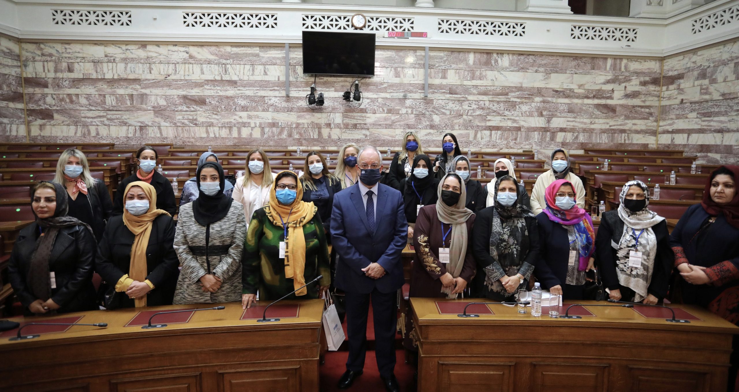 Ο Πρόεδρος της Βουλής στον χαιρετισμό του στην αίθουσα της Γερουσίας, αφού καλωσόρισε εγκάρδια τις γυναίκες από το Αφγανιστάν στο ελληνικό κοινοβούλιο, επιβεβαίωσε τα λόγια της Προέδρου της Δημοκρατίας, κ. Κατερίνας Σακελλαροπούλου, με την οποία επίσης συναντήθηκαν, ότι η Ελλάδα δεν ήταν δυνατόν να λείψει από τη διεθνή προσπάθεια προστασίας των δικαιωμάτων τους.