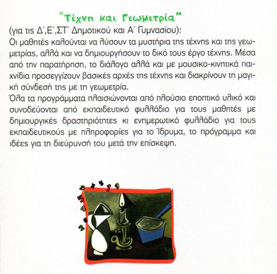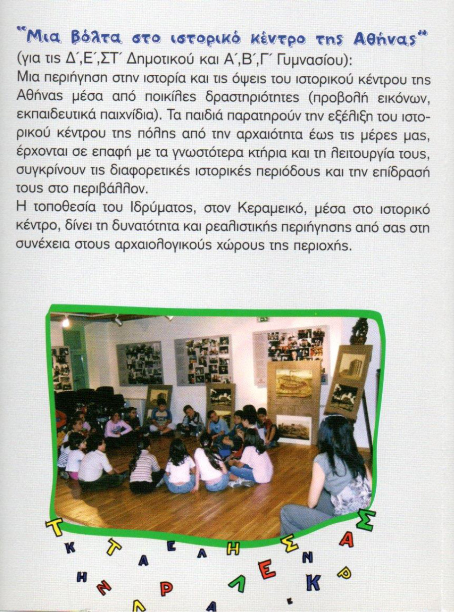 Φυσικά θα γνωρίσουν τους χώρους του Ιδρύματος που συνεχίζει το έργο του με τις δικές του δυνάμεις στον Πολιτισμό και την παιδεία αλλά και να συμμετάσχουν σε ένα από τα εκπαιδευτικά μας προγράμματα της επιλογής τους.