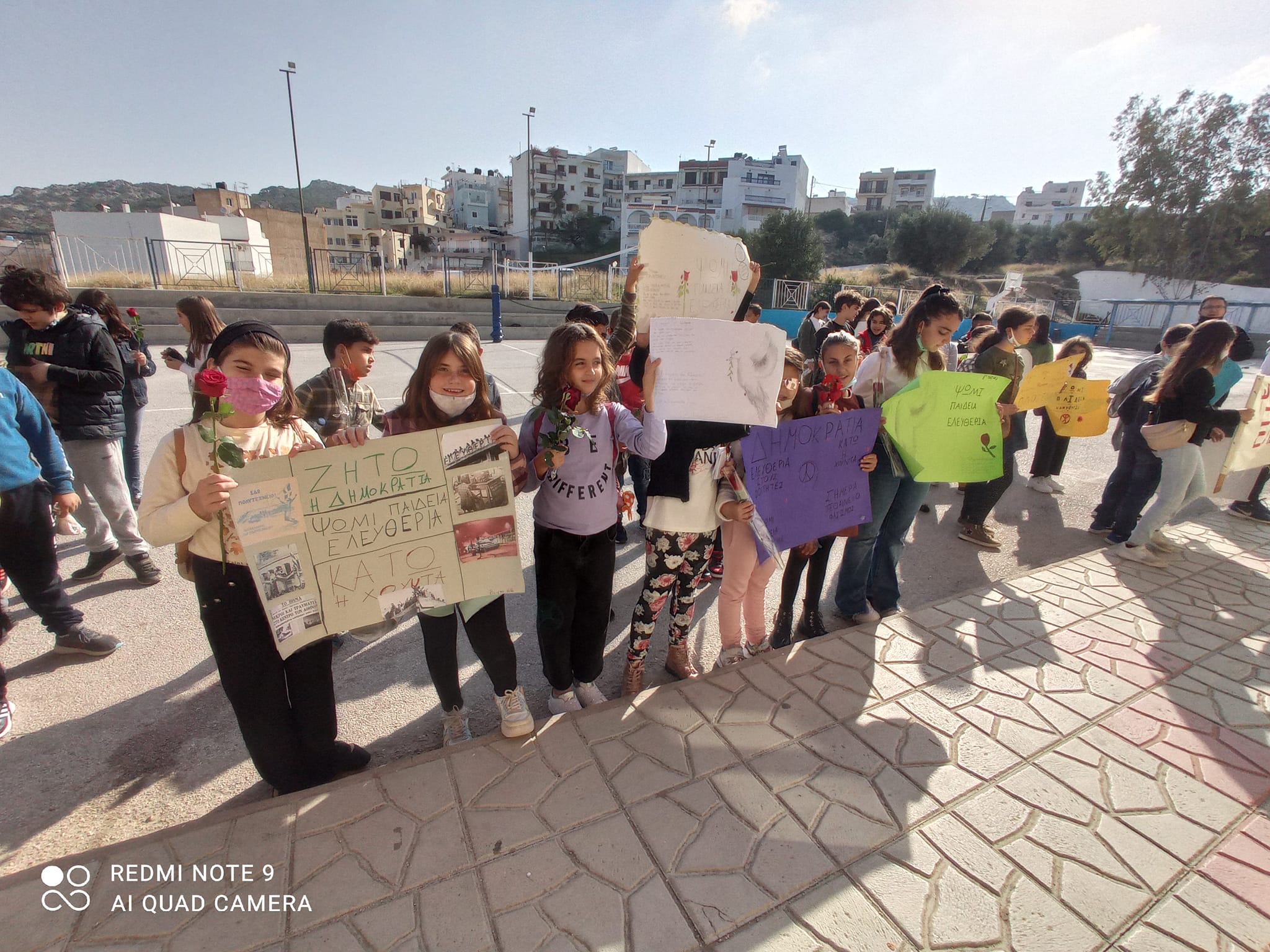 Είναι η μέρα που παίρνουμε το παράδειγμα εκείνων για να υπερασπιζόμαστε αυτό το υπέρτατο αγαθό και να αγωνιζόμαστε ενάντια σε κάθε μορφή βίας και φασισμού, να αγωνιζόμαστε για ΨΩΜΙ-ΠΑΙΔΕΙΑ-ΕΛΕΥΘΕΡΙΑ!
