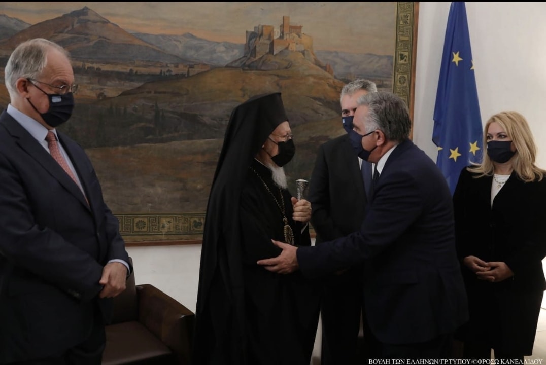 Με την ευκαιρία της επίσημης επίσκεψης, στην Βουλή των Ελλήνων, του Παναγιωτάτου Οικουμενικού Πατριάρχη Κωνσταντινουπόλεως και Νέας Ρώμης κ.κ. Βαρθολομαίου, ο Κοσμήτορας της Βουλής και Βουλευτής Δωδεκανήσου Βασίλης Α. Υψηλάντης δέχθηκε την ευλογία του και αντάλλαξαν εγκάρδιο χαιρετισμό.