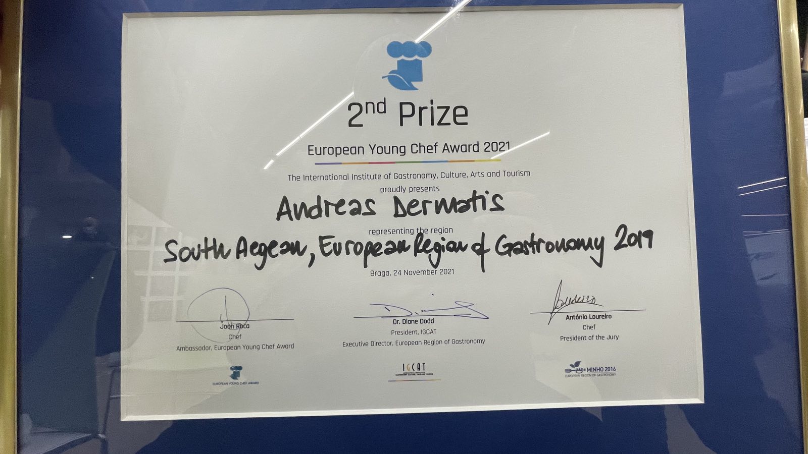 Την 2η θέση κατέκτησε ο νέος Σεφ, Ανδρέας Δερμάτης, εκπροσωπώντας την Περιφέρεια Νοτίου Αιγαίου στο διαγωνισμό European Young Chef Award 2021, που πραγματοποιήθηκε στην πόλη Μπράγκα (Braga) της Πορτογαλίας.