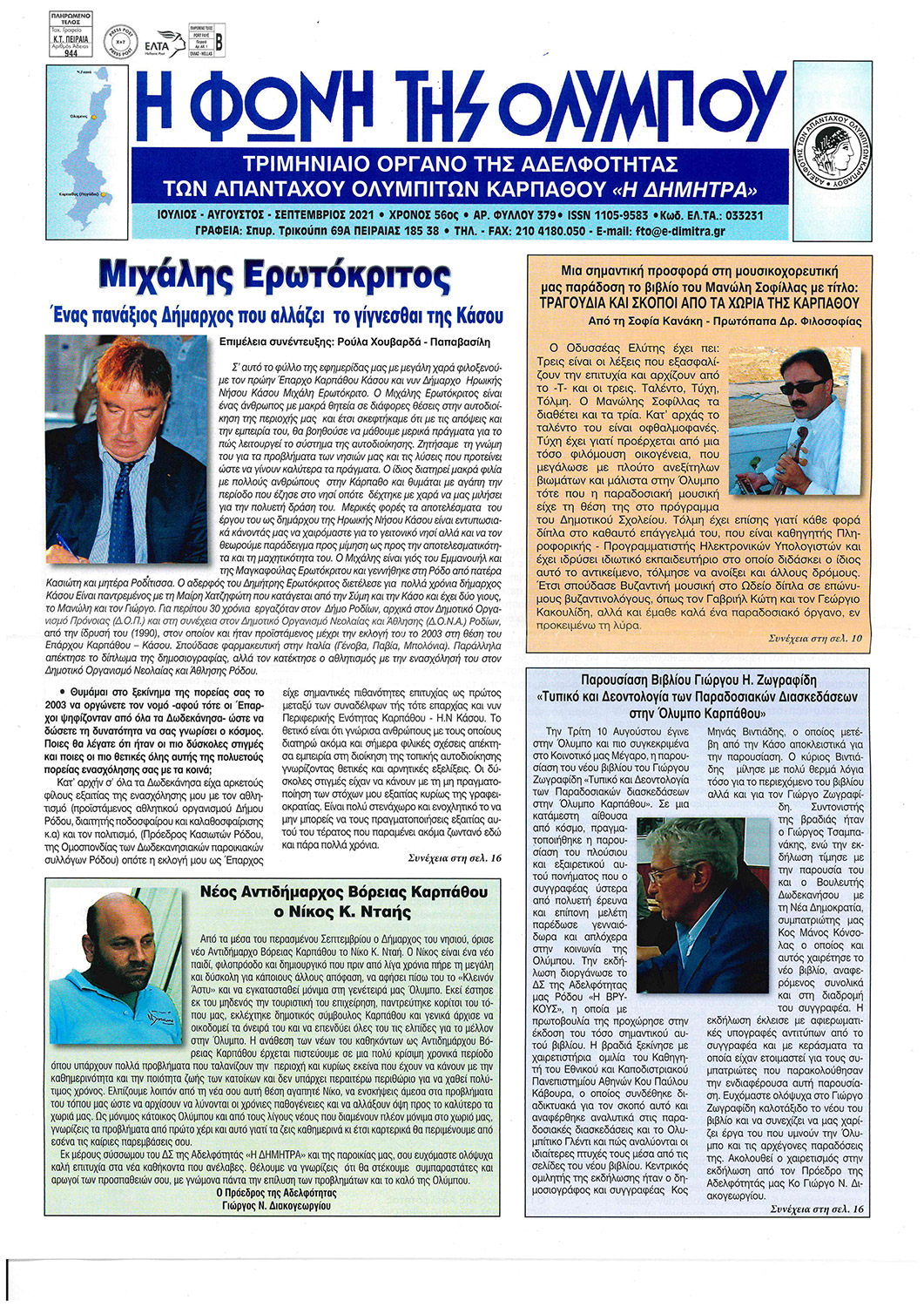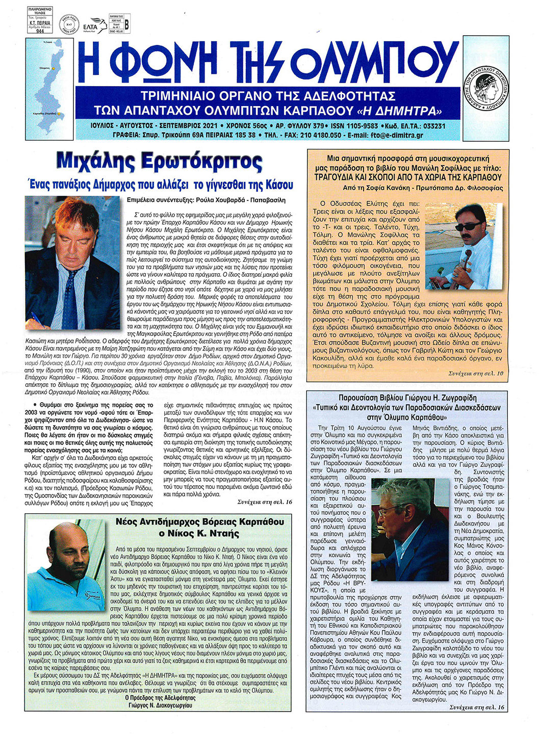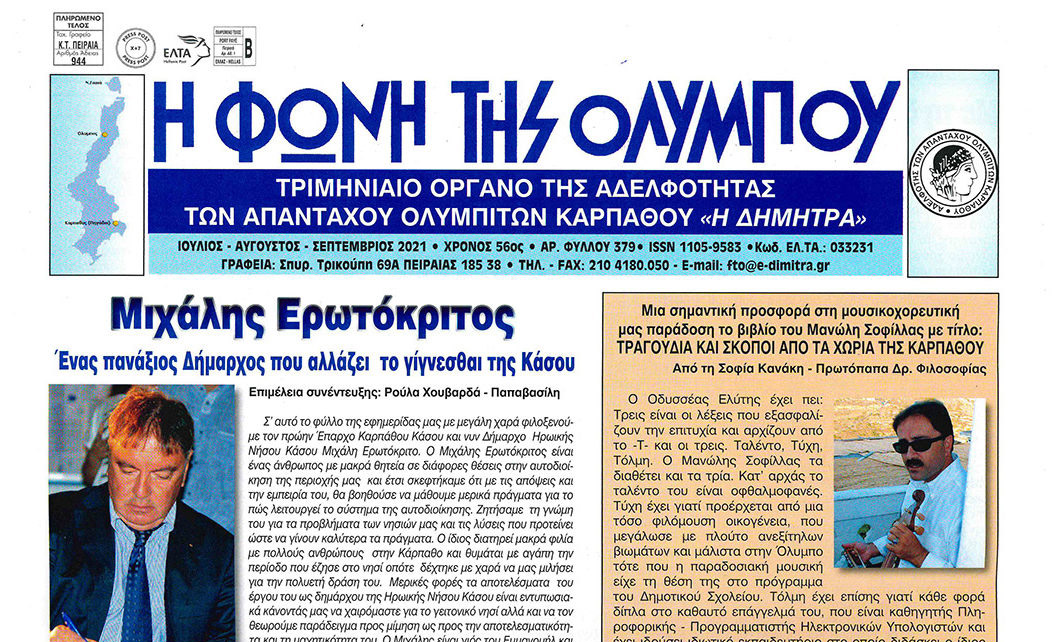 Τη γραφειοκρατία, την οποία χαρακτηρίζει «τέρας», θεωρεί ως μια μεγάλη δυσκολία στην πολυετή θητεία του στα κοινά, ο Δήμαρχος της Ηρωϊκής Νήσου Κάσου, Μιχάλης Ερωτόκριτος σε συνέντευξή του στην εφημερίδα «Η Φωνή της Ολύμπου».