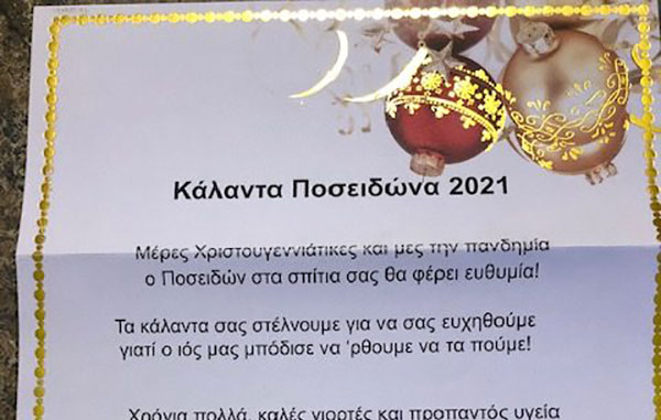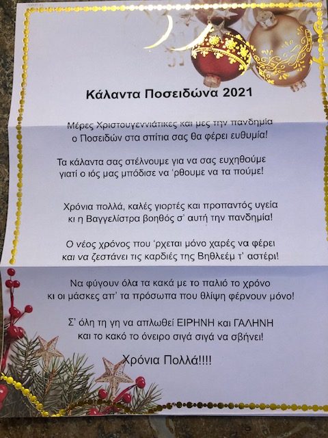 Λόγω πανδημίας δεν θα επισκεφθούμε τα μέλη μας για τα κάλαντα αλλά θα τα στείλουμε γραπτά.