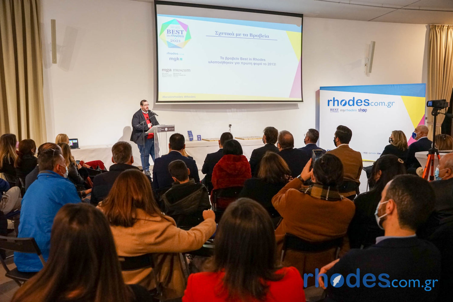 Στη συνέχεια έγινε η απονομή των Βραβείων Best in Rhodes 2021. Βραβεύθηκαν όλοι οι διακριθέντες ως Καλύτεροι (Best), ενώ για την θεματική ενότητα του Πολιτισμού βραβευτηκαν όλοι οι διακριθέντες (Best και Top). Συγκεκριμένα, βραβεύθηκαν: