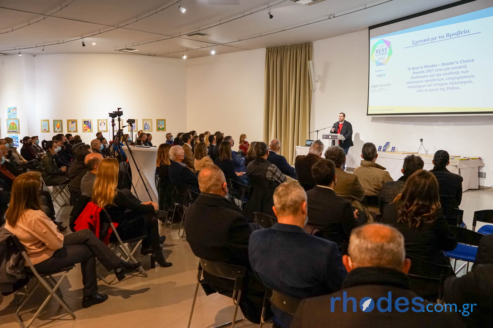 Η Τελετή Απονομή των Best in Rhodes – Reader’s Choice Awards 2021 πραγματοποιήθηκε την Τρίτη, 21 Δεκεμβρίου 2021 στη Νέα Πτέρυγα του Νεστοριδείου Μελάθρου του Μουσείου Νεοελληνικής Τέχνης του Δήμου Ρόδου, με τήρηση όλων των μέτρων κατά της πανδημίας.