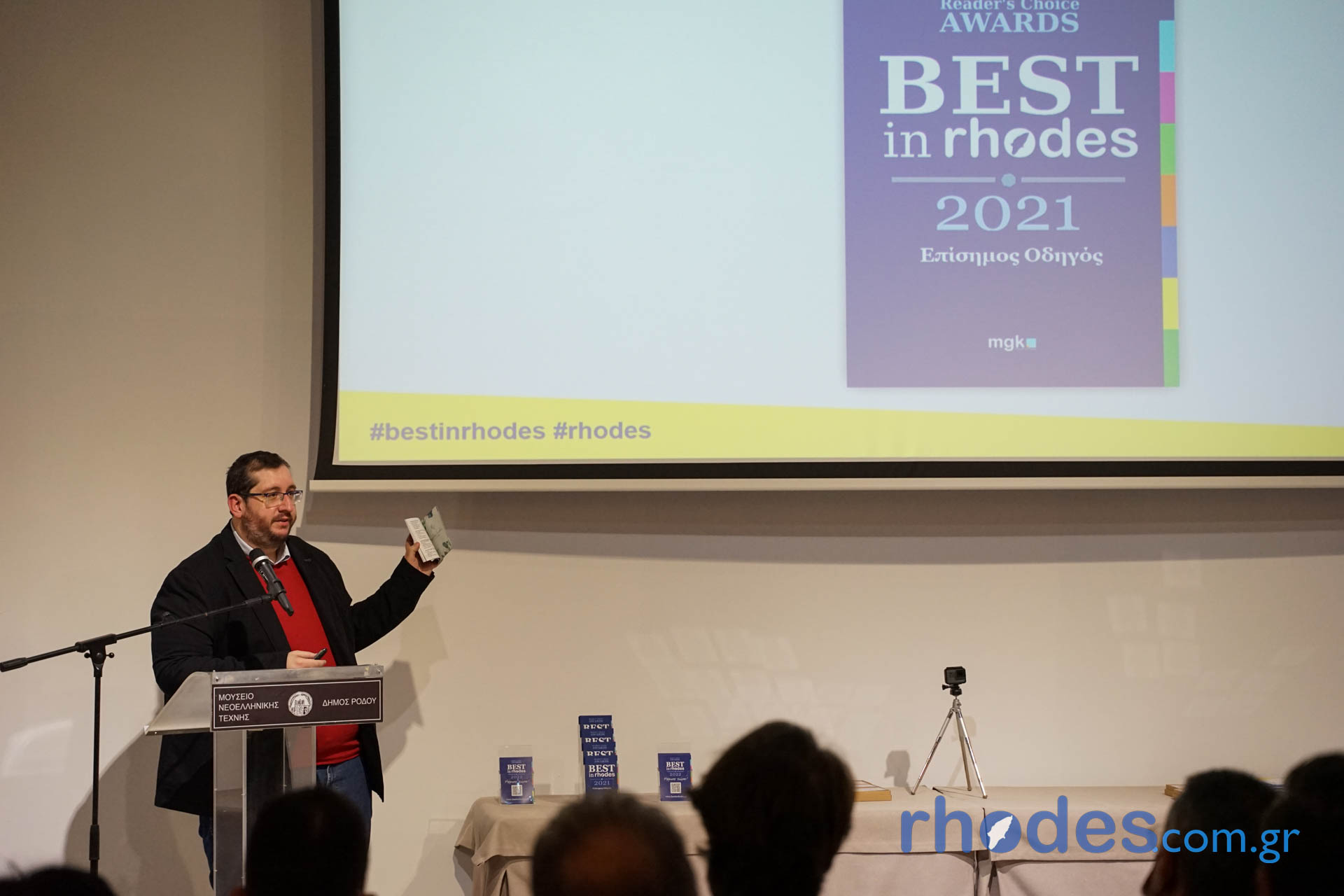 Η εκδήλωση ολοκληρώθηκε με την παρουσίαση του Επίσημου Οδηγού των Best in Rhodes – Reader’s Choice Awards, ένα ετήσιο περιοδικό, καταχωρημένο στην Εθνική Βιβλιοθήκη με ISSN 2732-933X, το οποίο περιλαμβάνει τα αποτελέσματα και θα διανέμεται δωρεάν σε κεντρικά σημεία της πόλης.