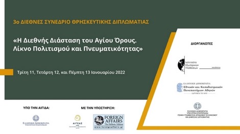 Με θεματικό τίτλο «Η Διεθνής Διάσταση του Αγίου Όρους. Λίκνο Πολιτισμού και Πνευματικότητας» ολοκλήρωσε με επιτυχία τις εργασίες του το 3o Διεθνές Συνέδριο Θρησκευτικής Διπλωματίας, το οποίο, λόγω της πανδημίας, διεξήχθη διαδικτυακά από τις 11 έως και τις 13 Ιανουαρίου.
