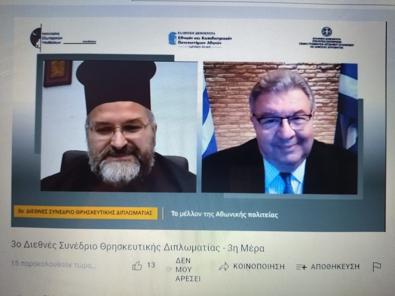 Συνδιοργανωτές της εκδήλωσης ήταν η Γενική Γραμματεία Απόδημου Ελληνισμού και Δημόσιας Διπλωματίας του Υπουργείου Εξωτερικών, το Ινστιτούτο Εξωτερικών Υποθέσεων και το Εθνικό και Καποδιστριακό Πανεπιστήμιο Αθηνών, μέσω του Εργαστηρίου «Εκκλησία και Πολιτισμός» της Θεολογικής Σχολής.