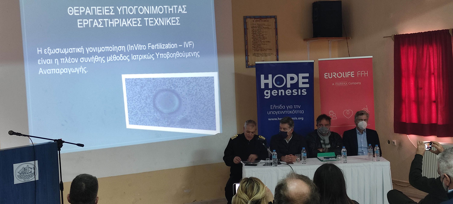 Το Σάββατο 29 Ιανουαρίου ομάδες της HOPEgenesis, και της EUROLIFE FFH σε συνεργασία με το Πολεμικό Ναυτικό και την μονάδα του Ναυτικού Νοσοκομείου Αθηνών επισκέφθηκαν την Η.Ν. Κάσο, στα πλαίσια του 15ου οδοιπορικού τους, με σκοπό την ενημέρωση των κατοίκων για την διεξαγωγή του νέου προγράμματος παροχής δωρεάν θεραπειών εξωσωματικής γονιμοποίησης.