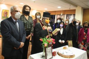 Ο πρόεδρος της Ομοσπονδίας κ. Γιάννης Φραγκούλης και οι αντιπρόεδροι κ.κ Βουρεξάκη Κατερίνα (εκπρόσωπος Ένωσης Καλυμνίων) και Καραϊτιανός Γιάννης (πρόεδρος Συλλόγου Απανταχού Καρπαθίων), αφού ευχαρίστησαν όλους τους παρευρισκόμενους για την παρουσία τους, κάλεσαν τον ιερέα πατέρα Μιλτιάδη, με καταγωγή από το Όθος Καρπάθου, να ευλογήσει την Βασιλόπιττα. Τηρώντας αυστηρά μέτρα προφύλαξης, τα κομμάτια της Βασιλόπιττας μαζί με τα κεράσματα που είχαν ετοιμάσει οι κυρίες του Δ.Σ, μοιράστηκαν συσκευασμένα στους παρευρισκόμενους, κατά την αποχώρηση τους.