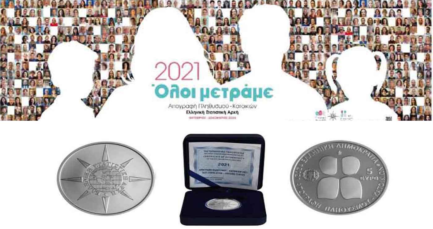 Με αφορμή την Απογραφή που διενήργησε η Ελληνική Στατιστική Αρχή (ΕΛΣΤΑΤ), την πρώτη ψηφιακή Απογραφή στην Ελλάδα, περιλήφθηκε στο νομισματικό πρόγραμμα της Χώρας μας το μοναδικό στο είδος του αργυρό συλλεκτικό νόμισμα με θέμα «Απογραφή Πληθυσμού – Κατοικιών 2021».