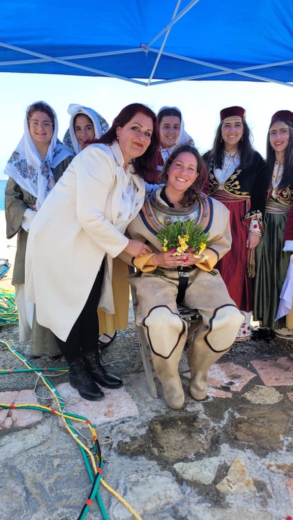 Εντυπωσιακή η παρουσία του Συλλόγου Αυτοδυτών Καλύμνου, μέλος του οποίου, η Ζηνοβία Εργά, η πρώτη γυναίκα δύτης στην Ελλάδα τον 21ο αιώνα παρουσίασε πραγματική κατάδυση, φορώντας το σκάφανδρο και κουβαλώντας 90 κιλά επί πλέον βάρος.
