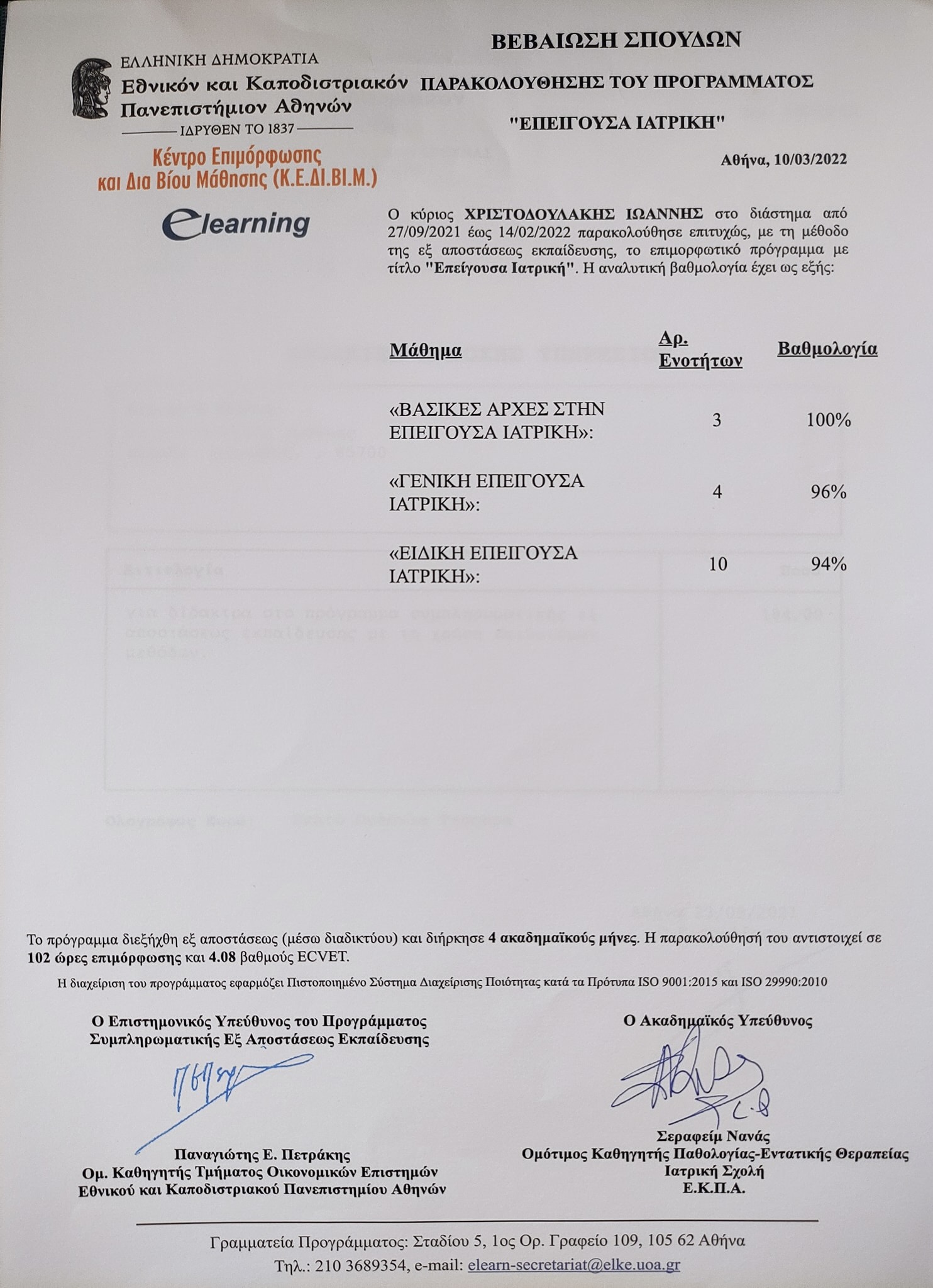 Ευχαριστώ θερμά τον διοικητή, το ιατρικό και νοσηλευτικό προσωπικό του Γ.Ν Καρπάθου και του τμήματος επειγόντων περιστατικών για την άψογη συνεργασία μας κατά την περίοδο της πρακτικής μου άσκησης.