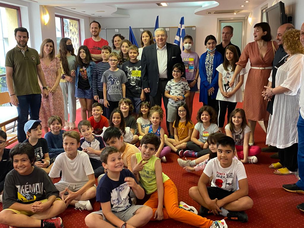 Ο Γενικός Γραμματέας επισκέφθηκε, επίσης, το ελληνικό σχολείο Βουκουρεστίου “Αθηνά”, όπου, τον υποδέχτηκαν πολύ θερμά, τα παιδιά, οι εκπαιδευτικοί και ο Σύλλογος Γονέων και Κηδεμόνων.