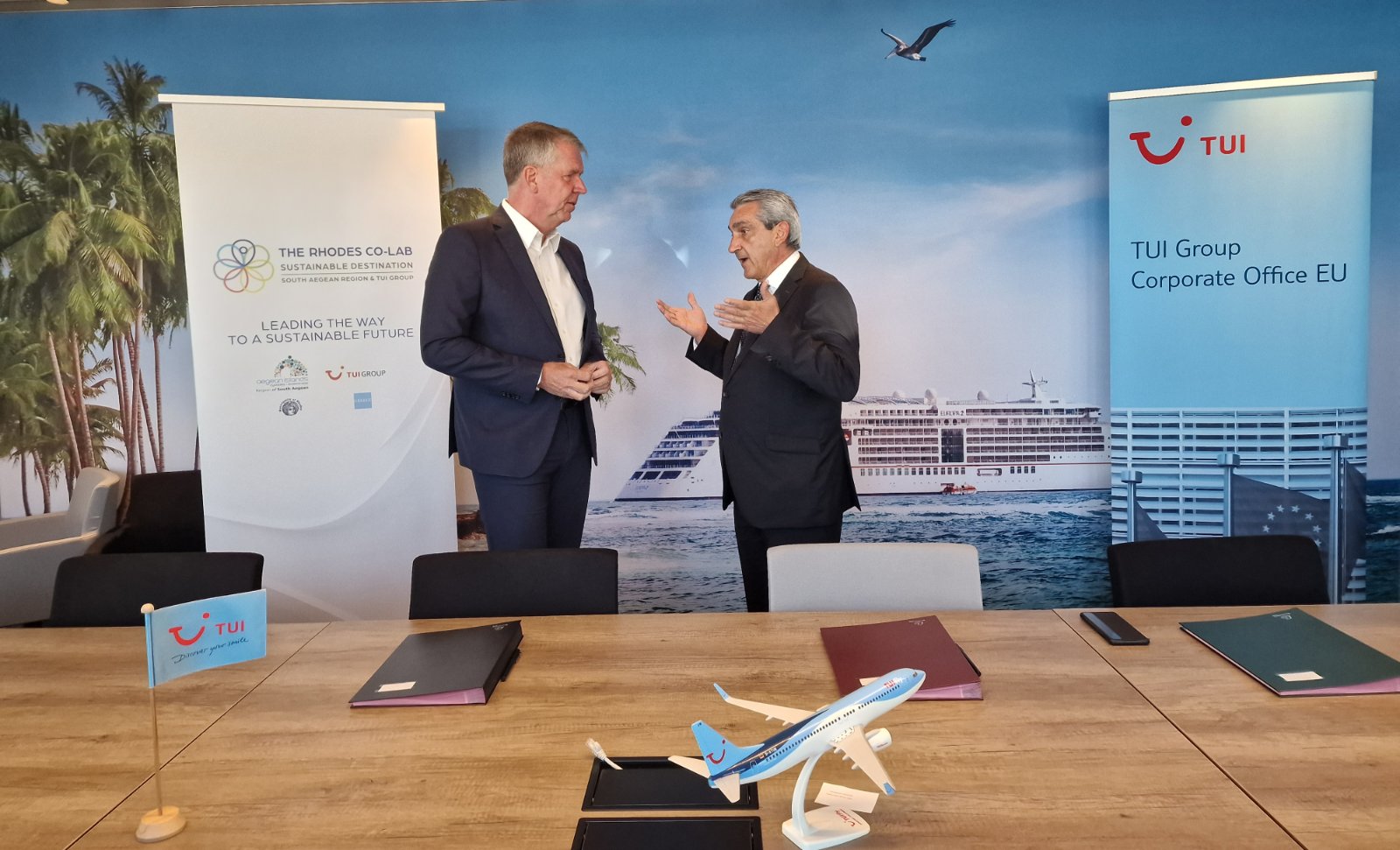 Τη Συμφωνία συνεργασίας υπέγραψαν ο Περιφερειάρχης Νοτίου Αιγαίου, Γιώργος Χατζημάρκος, ο Διευθύνων Σύμβουλος της TUI AG, Fritz Joussen και ο Πρόεδρος του Διοικητικού Συμβουλίου του TUI Care Foundation, Thomas Ellerbeck, παρόντος του Δημάρχου Ρόδου, Αντώνη Καμπουράκη.