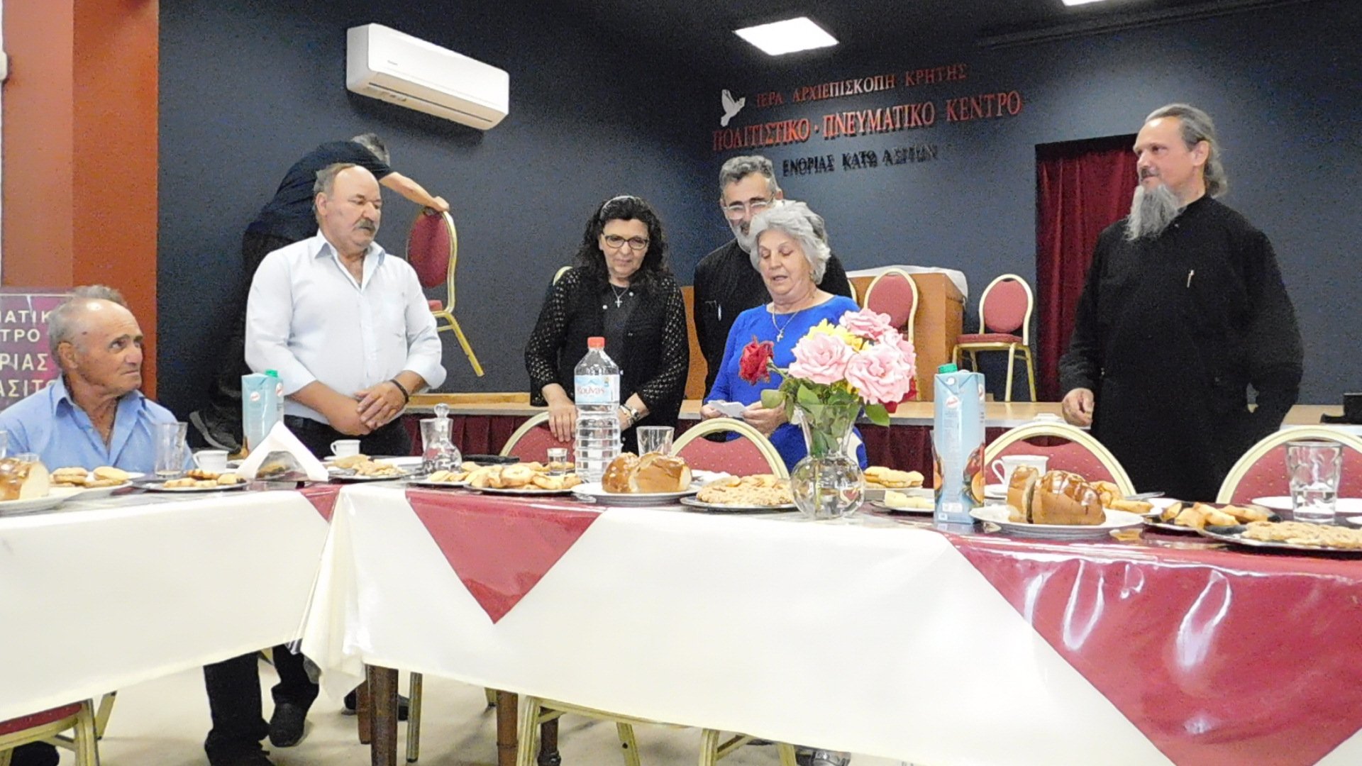 Ακολούθησε μικρή δεξίωση στο Πολιτιστικό-Πνευματικό Κέντρο της Ενορίας μας που φρόντισαν και επιμελήθηκαν οι σύζυγοι των εκκλησιαστικών συμβούλων και βοήθησε και η κ. Παρασκευή Λεστάκη.