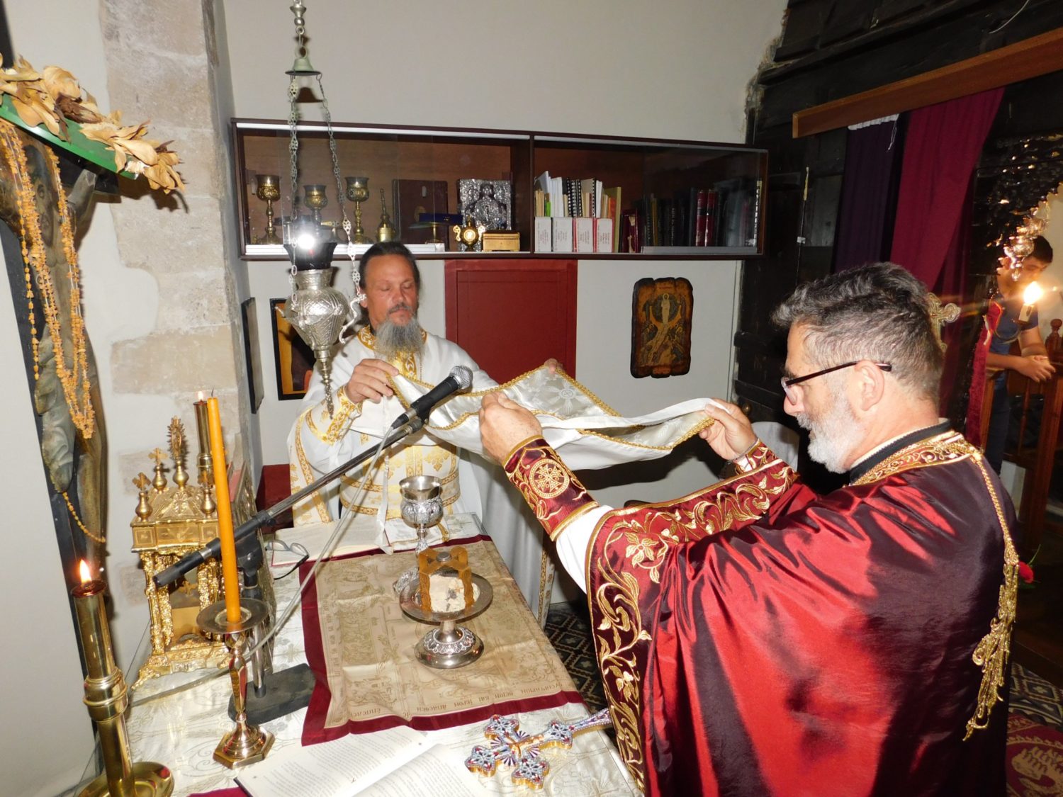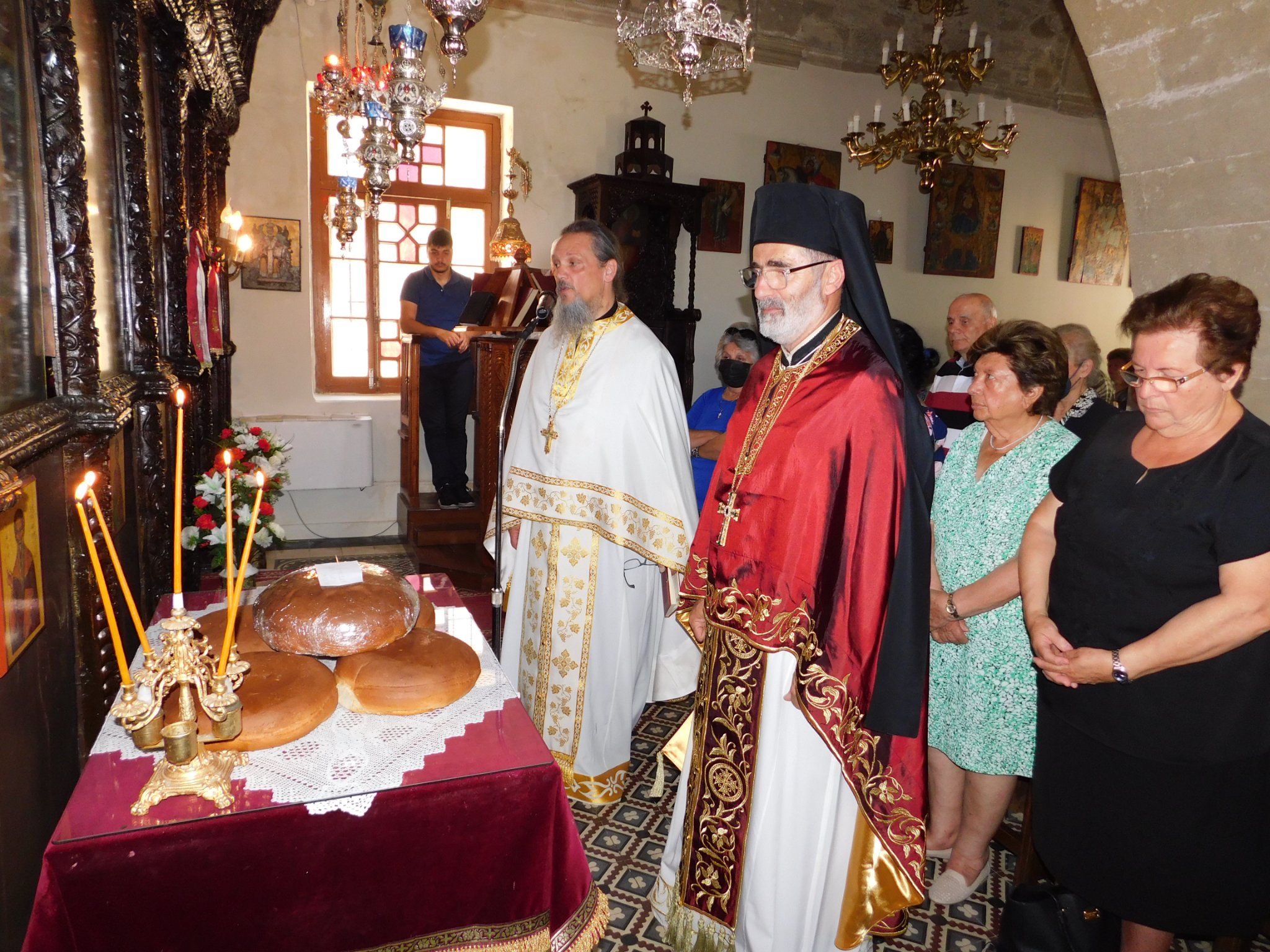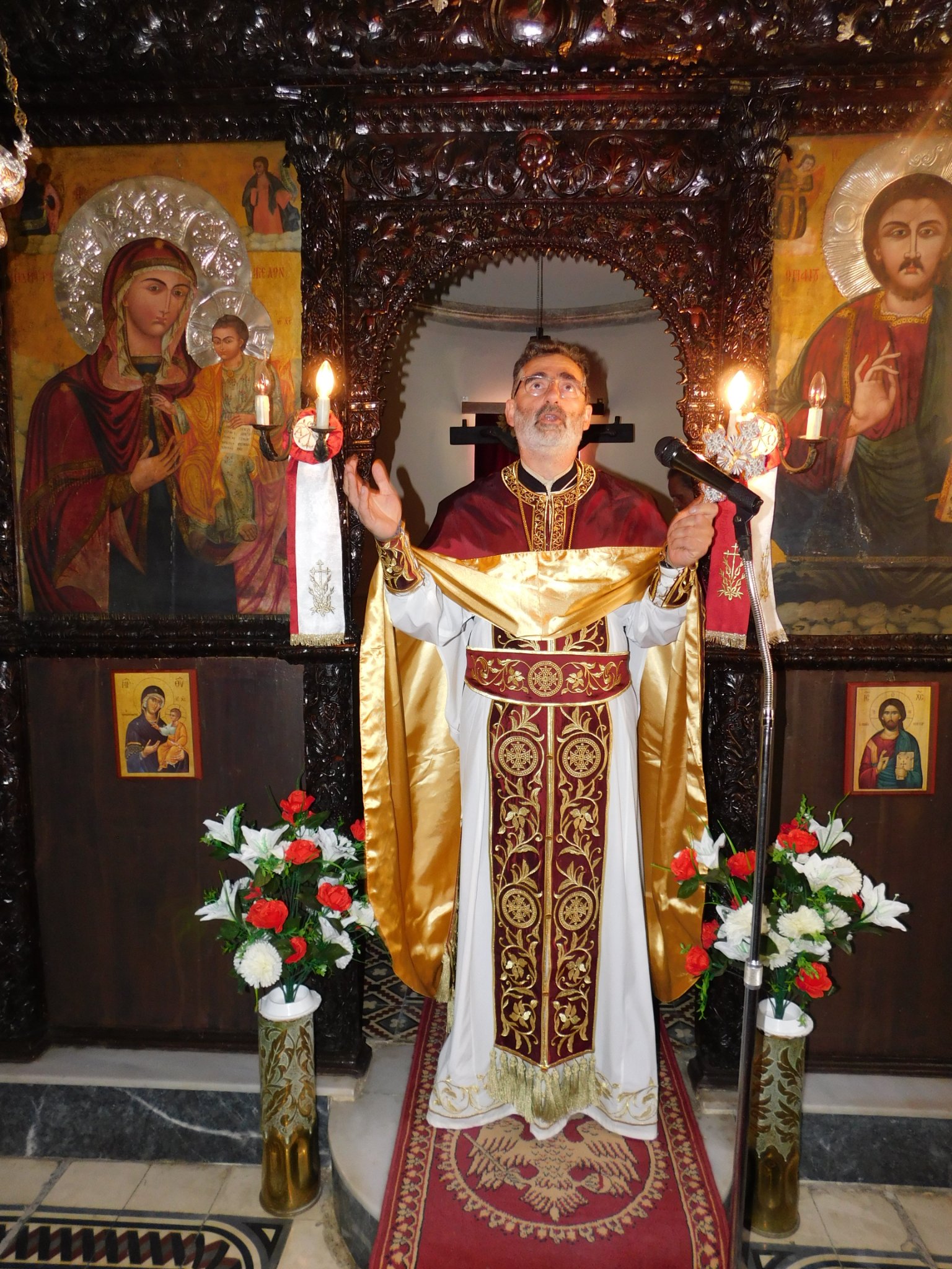 Μετά την ευλόγηση των άρτων και του κηρύγματος από τον πατέρα Επιφάνιο, εμφανώς συγκινημένος ο εφημέριος αφού τους καλωσόρισε αναφέρθηκε σύντομα στην μακρόχρονη φιλία που τον συνδέει με τον πατέρα Επιφάνιο ως απόφοιτοι και οι δύο της Ριζαρείου Εκκλησιαστικής Σχολής και στην ιστορία του καμπαναριού του Ναού όπου Καρπάθιοι μάστορες το 1887 το κατασκεύασαν.
