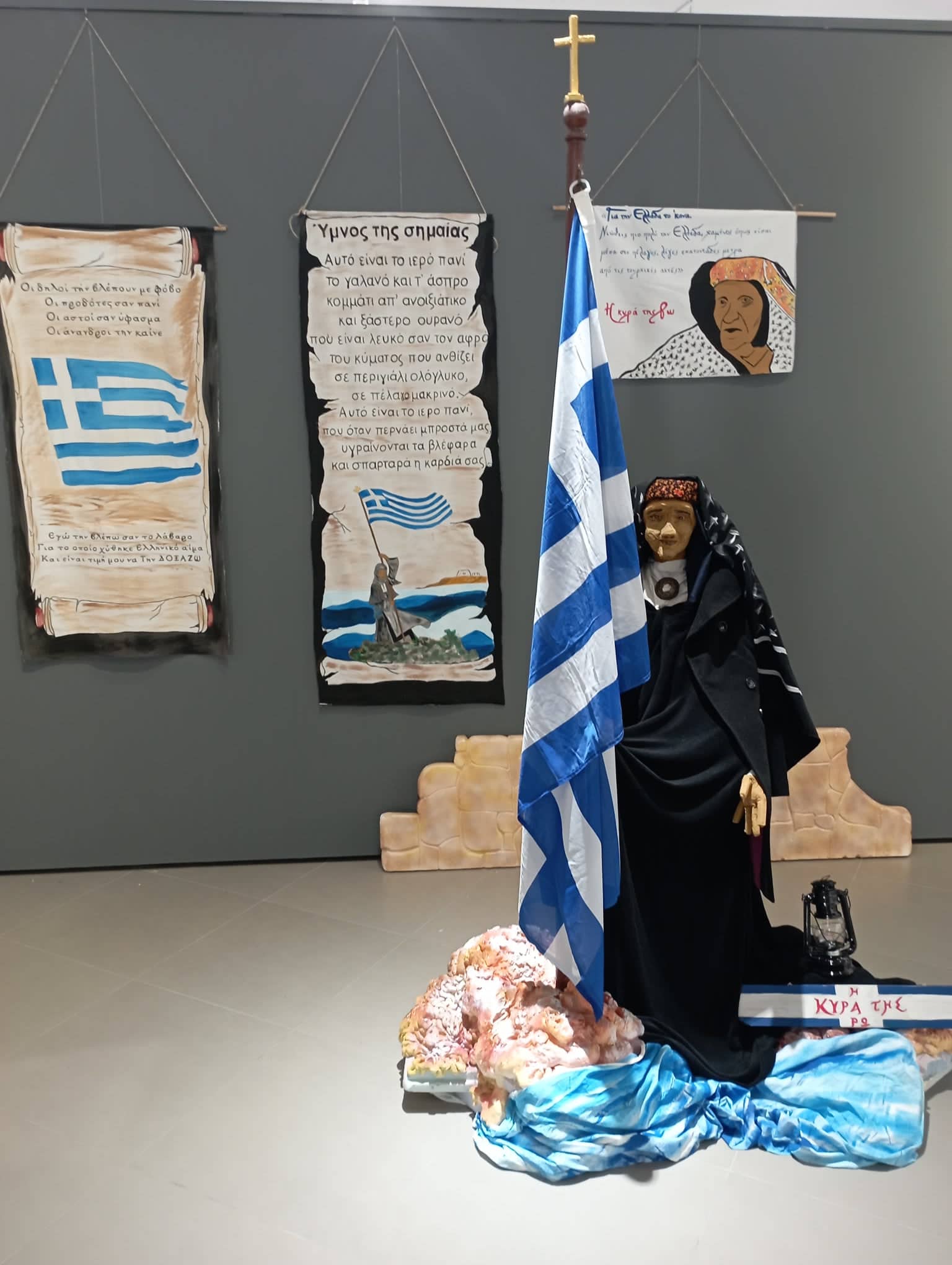 Στην έκθεση, παρουσιάστηκαν έργα πυρογραφίας, πανό, πάπυροι και ξύλινα ομοιώματα με τη Δέσποινα Αχλαδιώτη, καθώς και η Παραδοσιακή Φορεσιά – κειμήλιο 120 ετών. Δημιουργός των έργων είναι ο συνάδελφος και μέλος της Ένωσης Στρατιωτικών Περιφερειακής Ενότητας Ρόδου Αρχιλοχίας (ΠΒ) Στράτος Μυλωνάς. Επίσης, προβλήθηκε βίντεο με εικόνες από την ζωή της, δημιουργία του επίσης συνάδελφου και μέλους της Ε.Σ.ΠΕ.Ε.Ρ. Επιλοχία (ΠΖ) Κωνσταντίνου Χαραλαμπίδη.