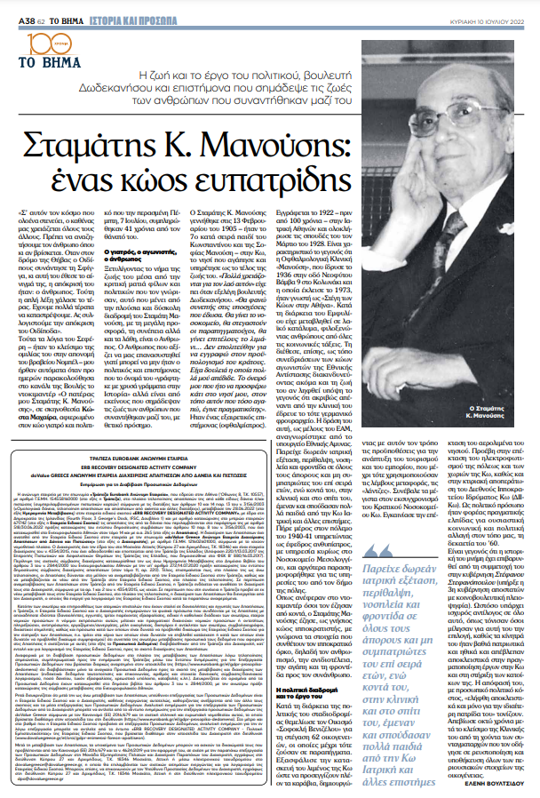Σταμάτης Κ. Μανούσης: ένας Κώος ευπατρίδης