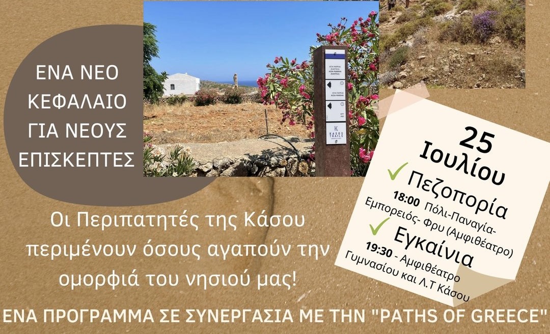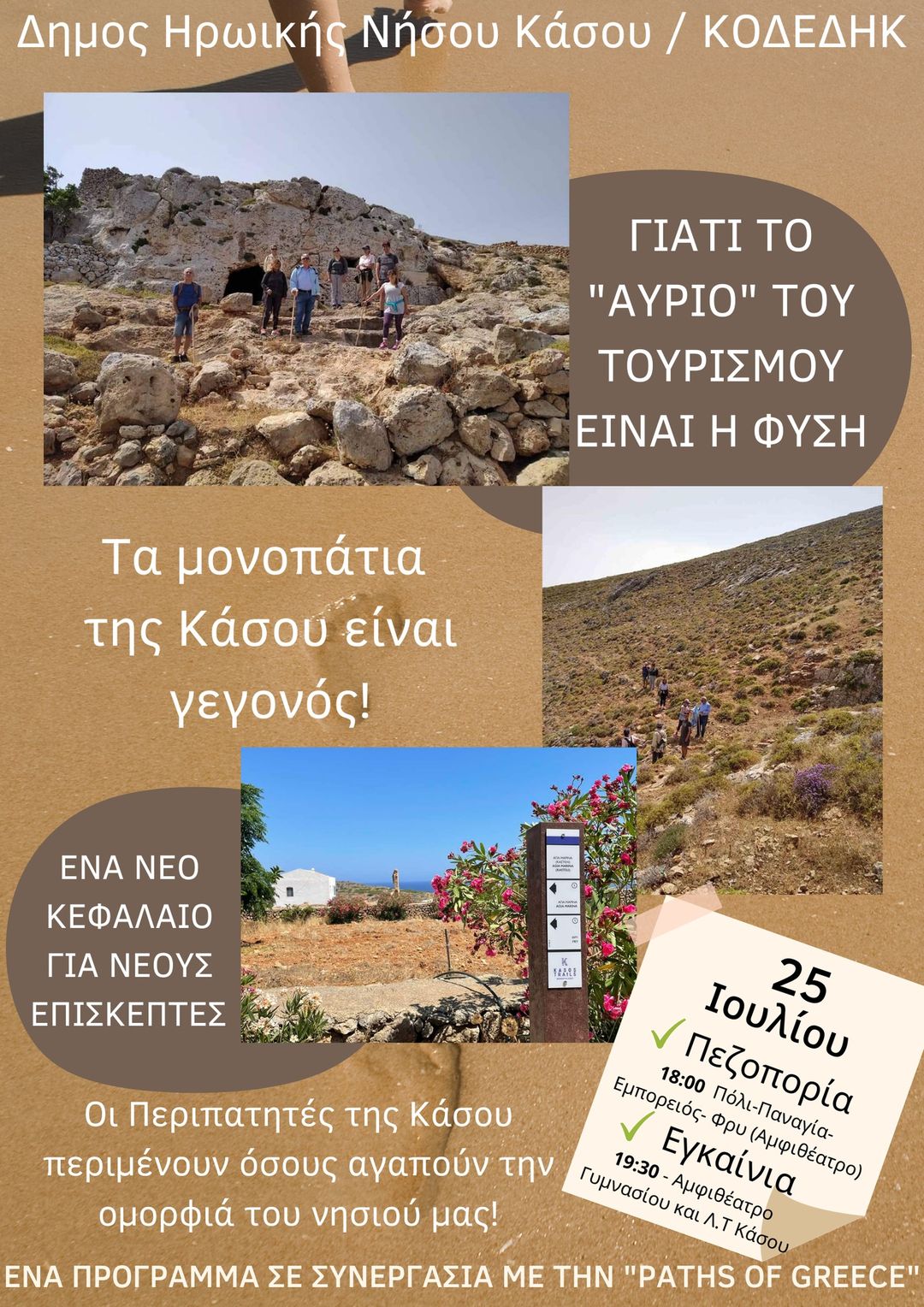 Την Δευτέρα 25/07 με ιδιαίτερη τιμή εγκαινιάζουμε τα παλιά περιπατητικά μονοπάτια της Κάσου.