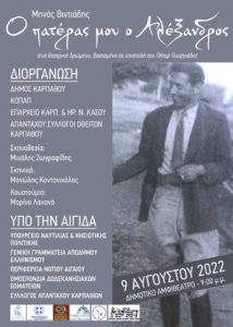 ΚΥΡΙΑΚΗ,7 Αυγούστου στο Μέγαρο Ευαγγελίστριας 8 στο Όθος 9 στο αμφιθέατρο. Ένα τριήμερο χρέους,τιμής και μνήμης! …