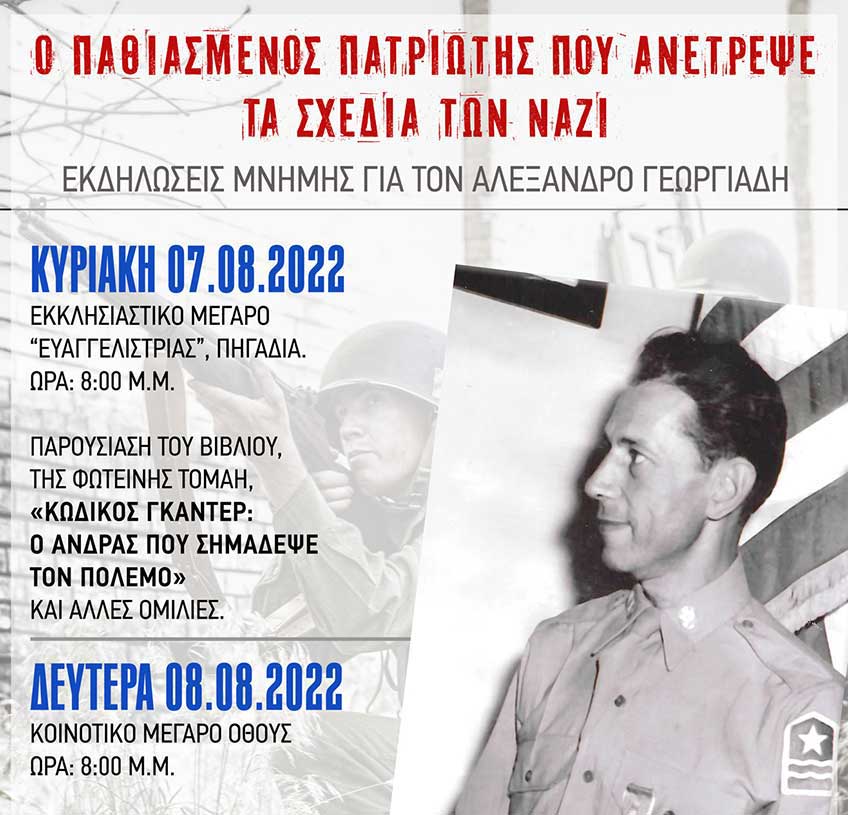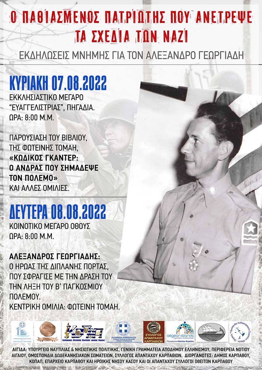 2) Φωτεινή Τομαή: «Αλέξανδρος Γεωργιάδης: ο ήρωας της διπλανής πόρτας που με την δράση του σφράγισε την λήξη του Β’ Παγκόσμιου Πολέμου».