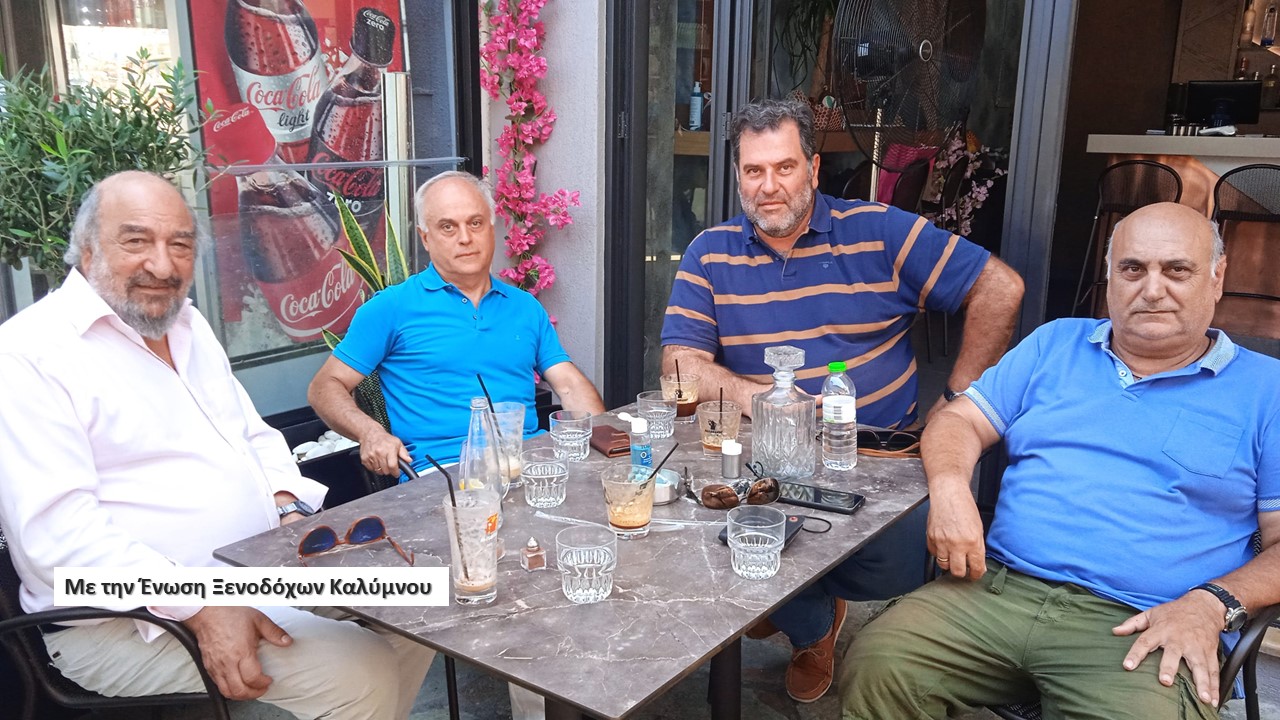Στη συνέχεια ο τ. υφυπουργός Πολιτισμού Τουρισμού είχε συνάντηση με τον πρόεδρο της Ένωσης Ξενοδόχων Καλύμνου Νικόλαο Τσαγκάρη και μέλη του Δ.Σ του φορέα, Νικόλα Μαγριπλή και Σταμάτη Κουτούζη. Στη δίωρη συζήτηση που έγινε αναπτύχθηκαν τα σημαντικά ζητήματα που αντιμετωπίζει ο τουρισμός στο νησί.